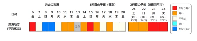 東海地方の向こう2週間の気温は、寒気の影響を受けにくく暖かい空気が