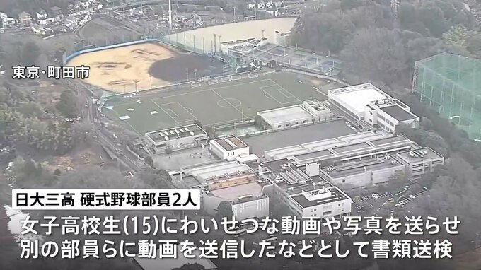 この事件は、日本大学第三高校硬式野球部員の男子生徒2人が、女子高校生(15)にわいせつな動画や写真を撮らせて送信させたうえ、別の部員らに動画を送信したなどとして、児童ポルノ禁止法違反の疑いで警視庁に書類送検されたものです。