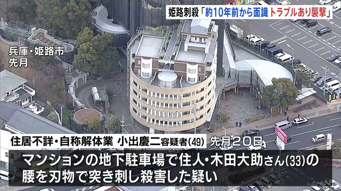 兵庫県姫路市のマンションで男性が刺殺された事件で、逮捕された男が「およそ10年前から面識があり、トラブルがあったので襲撃した」という趣旨の供述をしていることが分かりました。住居不詳、自称解体業の小出慶…