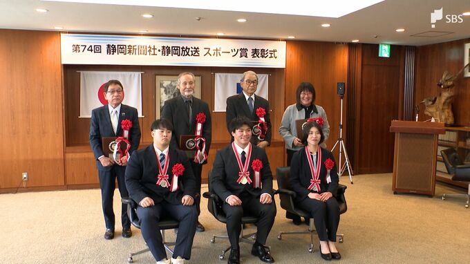 第74回静岡新聞社・静岡放送スポーツ賞の大賞と優秀賞に選ばれたのは全国や世界の舞台で活躍した3人の選手で、それぞれにメダルが贈られました。