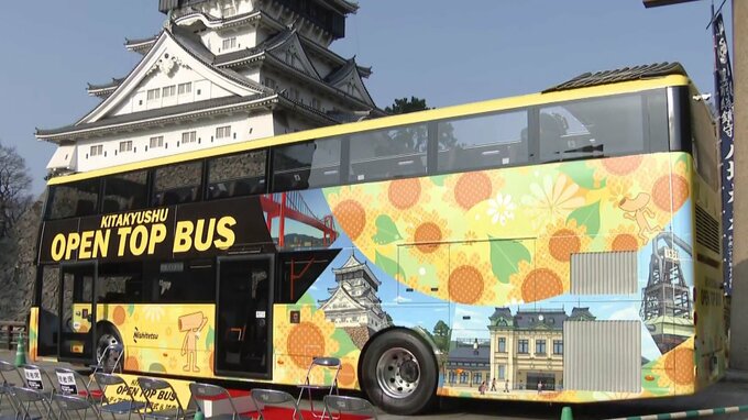 北九州市内の観光地をめぐる「オープントップバス」が3月から運行を開始するのを前に、13日、車両がお披露目されました。13日午前、小倉城歴史の道でお披露目されたのは、西鉄グループが運行する屋根のない2階建て…