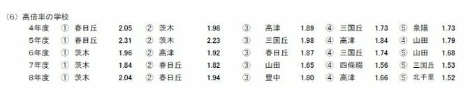 ▼高校別の倍率は?『茨木2.04倍』『春日丘1.94倍』がトップ2 前年と同じ顔ぶれに