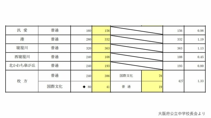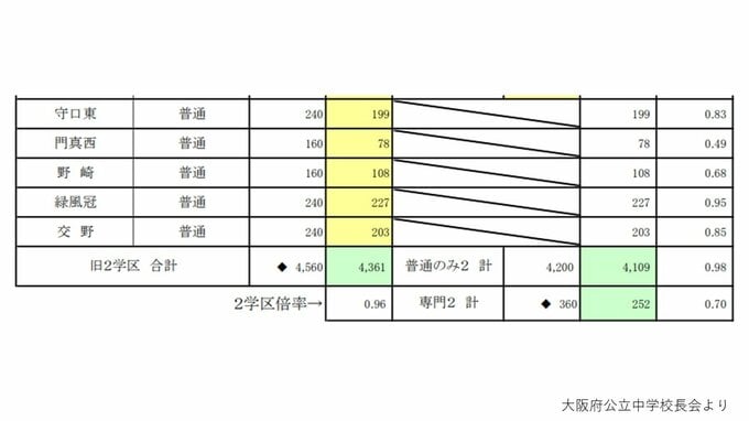 【大阪府立高校入試2026】茨木2.04倍、北野1.33倍、天王寺、大手前、岸和田の倍率は? 一方71校に定員割れの可能性 私立無償化の影響など【高校受験進路希望調査 全日制の全校掲載】 毎日放送 2026年2月13日(金) 18:00 国内 ▼全日制普通科・旧第2学区 東1.38倍、港1.19倍も13校が定員割れ