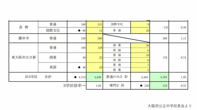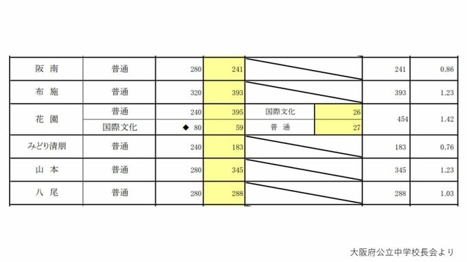 【大阪府立高校入試2026】茨木2.04倍、北野1.33倍、天王寺、大手前、岸和田の倍率は? 一方71校に定員割れの可能性 私立無償化の影響など【高校受験進路希望調査 全日制の全校掲載】 毎日放送 2026年2月13日(金) 18:00 国内 ▼全日制普通科・旧第3学区 花園1.42倍、富田林1.41倍 大塚、長野などが定員割れ