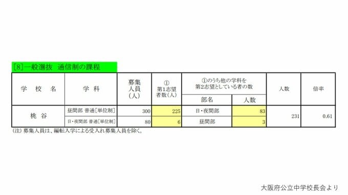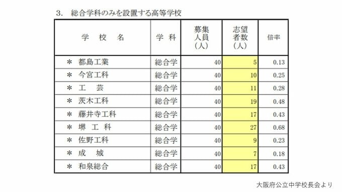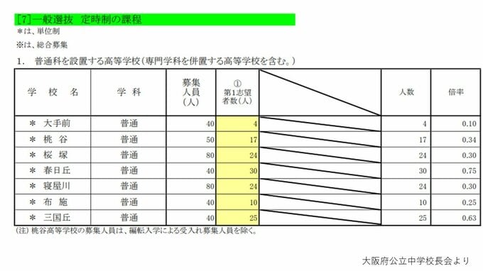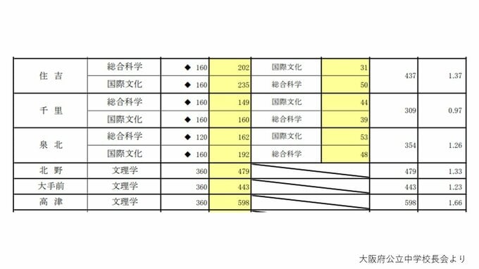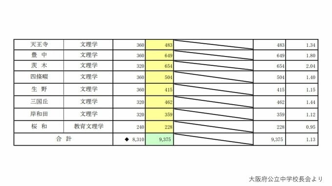 【大阪府立高校入試2026】茨木2.04倍、北野1.33倍、天王寺、大手前、岸和田の倍率は? 一方71校に定員割れの可能性 私立無償化の影響など【高校受験進路希望調査 全日制の全校掲載】 毎日放送 2026年2月13日(金) 18:00 国内 ▼普通科単位制・文理探究科・専門学科・総合学科・定時制・通信制の倍率