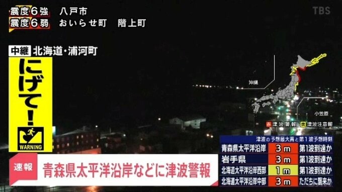 青森県も、太平洋沿岸に津波警報、日本海沿岸に津波注意報、陸奥湾に津波予報(若干の海面変動)と、3つの津波予報区にそれぞれ異なる情報が発表された。