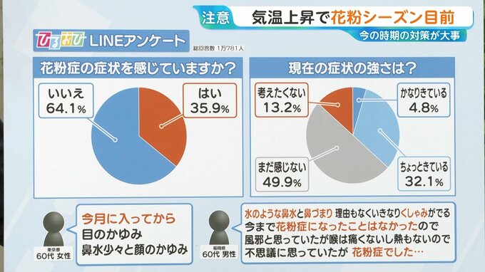 アンケートでは35%が「花粉症の症状感じる」