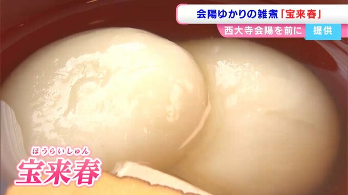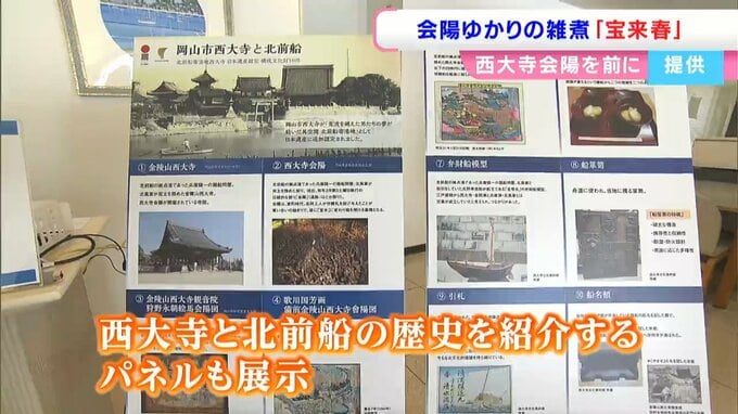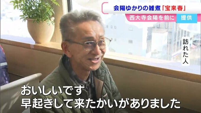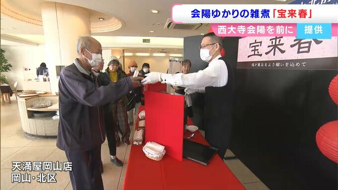 2月21日に行われる西大寺会陽を前に、天満屋岡山店で会陽ゆかりの雑煮「宝来春」が振る舞われました。