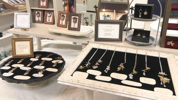 会場には、オブジェやオルゴール、アクセサリーなど約50点が展示されています。