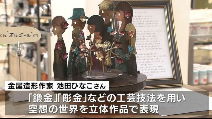様々な金属を使い、立体的な作品を制作している、池田ひなこさんの作品展が岡山市北区の百貨店で開かれています。