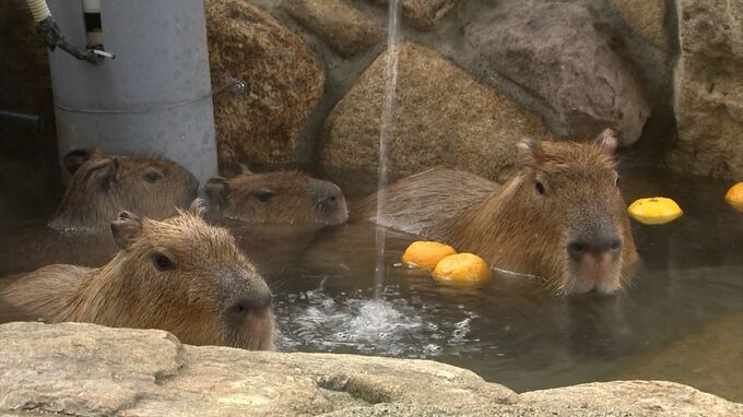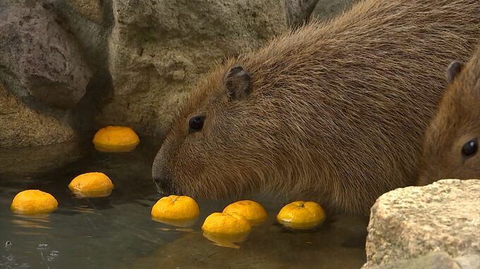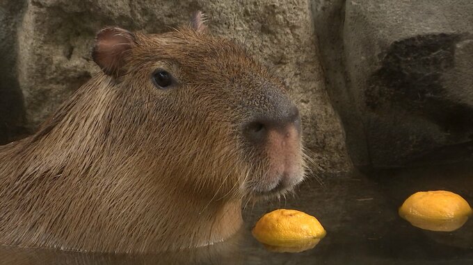 厳しい寒さから体を温めたいのは人だけではありません。ゆず湯を楽しんでいるのは動物園の人気者「カピバラ」です。