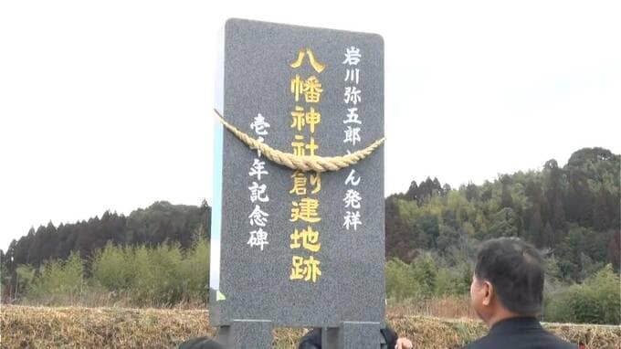 この日は、特定した元八幡神社跡地で神事が行われ、記念碑の除幕式がありました。