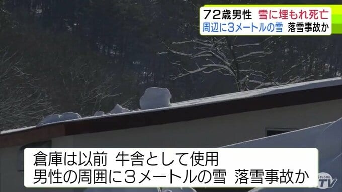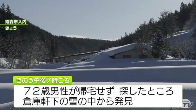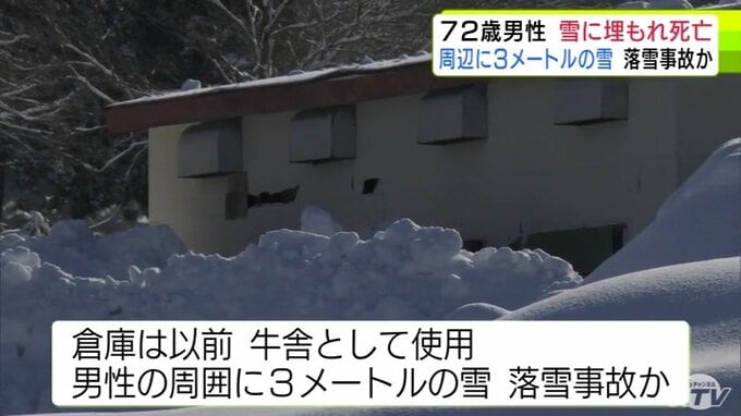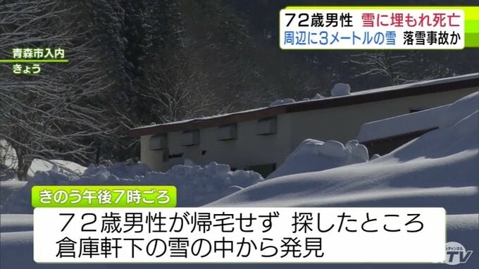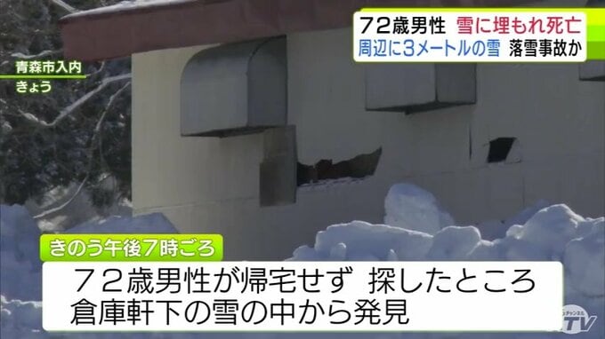 3. 落雪事故か 倉庫の屋根から落ちたとみられる雪に埋もれた72歳の男性発見 その場で死亡確認 男性の周りには約3mの雪 青森市