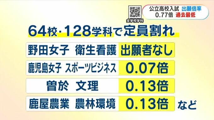 一方、県内では64校128学科で定員割れとなりました。