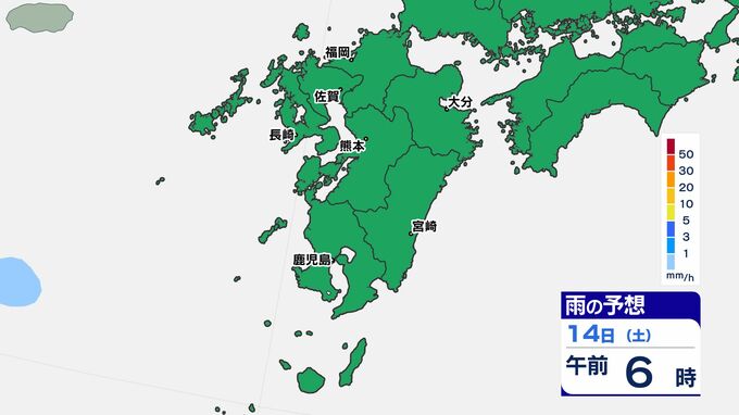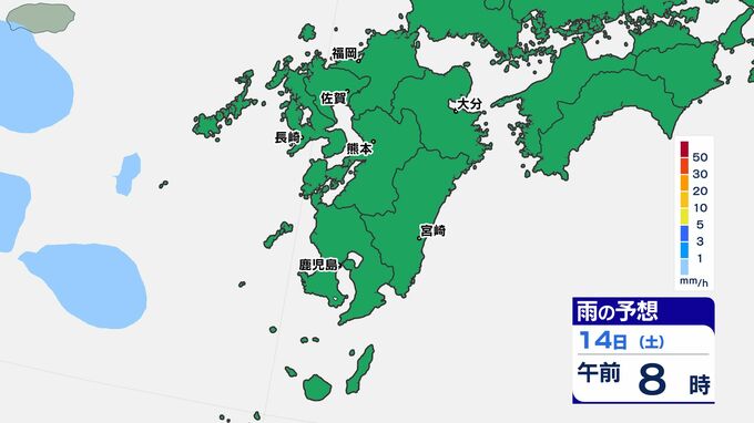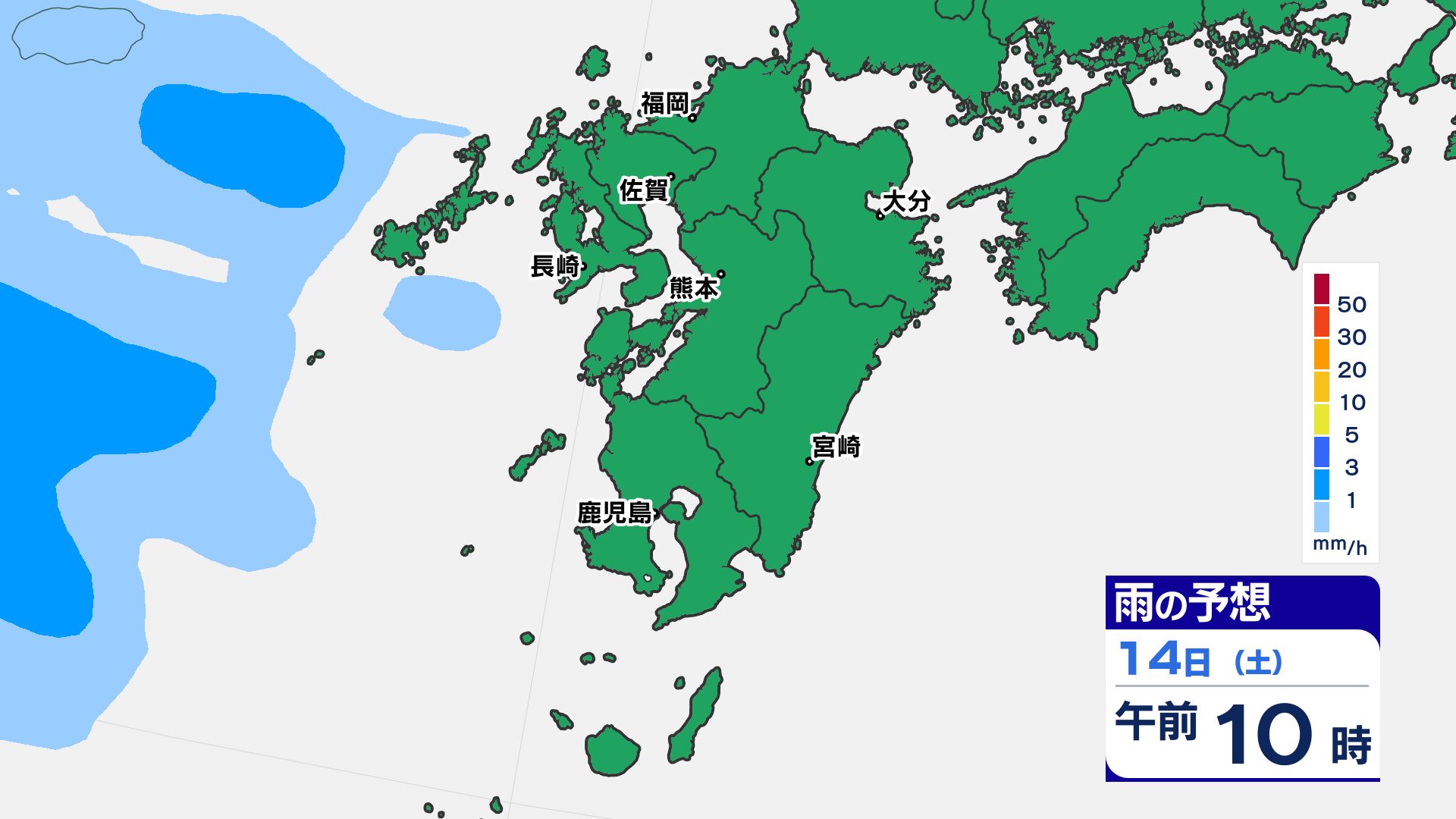 【土曜日 下り坂 雨】日曜日 天気回復 春本番の陽気 前回の日曜は極寒でしたが…【雨シミュレーション / 九州各都市の週間予報】福岡・佐賀・長崎・大分・熊本・宮崎・鹿児島 南日本放送 2026年2月13日(金) 20:00 国内 天気 【雨シミュレーション】14日(土)~15日(月) 14日(土)昼過ぎから雨になりそうです。朝、雨が降っていなくても必ず傘を持っていきましょう。雨のシミュレーションは画像で確認できます。 この記事をはじめから → 【雨のバレンタイン】雨シミュレーションと九州地方の週間予報