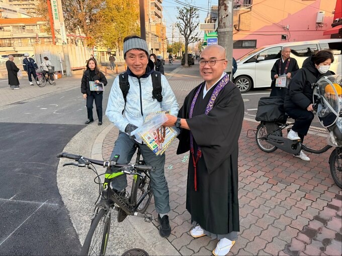 大阪市鶴見区で2月13日(金)、警察官と僧侶らがタッグを組み、自転車事故の防止を呼びかけました。 警察が僧侶に協力を仰いだ狙いとは?