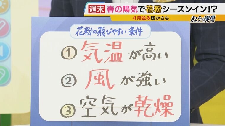 この週末、いよいよ本格的に花粉シーズン入りする可能性があります。前田智宏気象予報士は、花粉が飛びやすい気象条件として