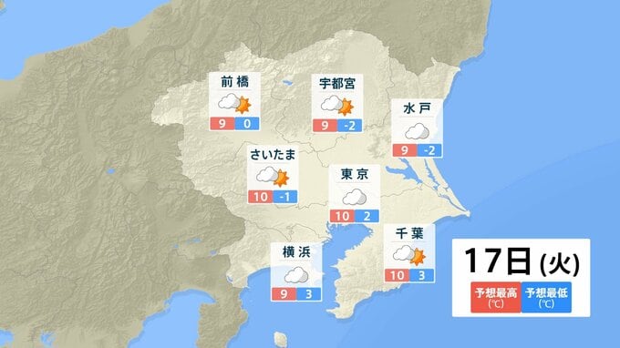 13日(金)の最高気温は、東京12.6℃・八王子市12.1℃・さいたま市12.8℃と3月上旬並みの気温で、寒さが緩みました。