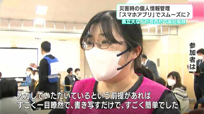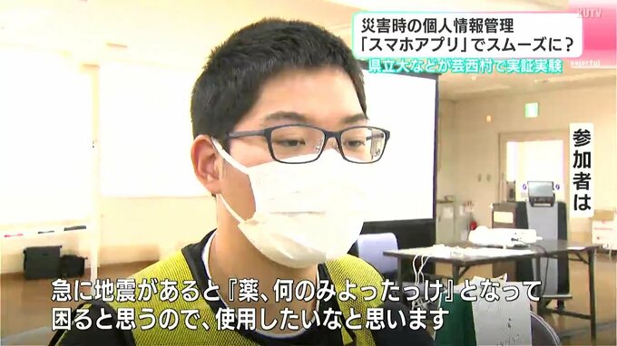 使用したアプリは県立大学が開発した「K-DiPS(ケイ・ディップス)」。名前・年齢・血液型・過去の病気の情報などをあらかじめ入力し、災害時に自らの判断で開示や共有ができるアプリです。