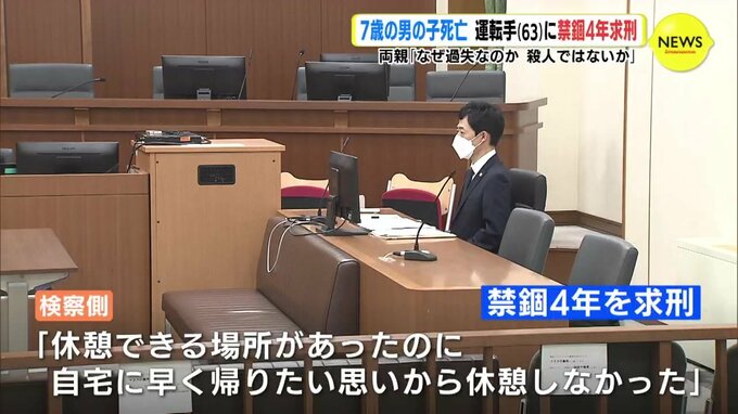 検察側は「休憩できる場所があったのに、自宅に早く帰りたい思いから休憩しなかった」などと指摘し、禁錮4年を求刑。