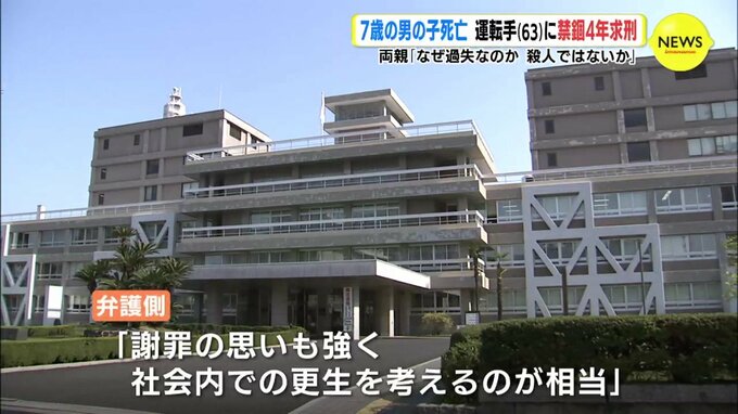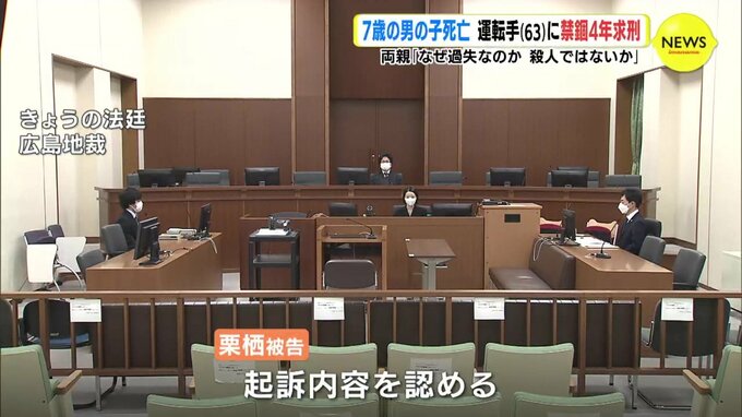 ことし10月、広島市の国道で車で7歳の男の子をはね、死亡させた罪に問われている男の裁判で、男は起訴内容を認めました。検察側は、禁錮4年を求刑しました。