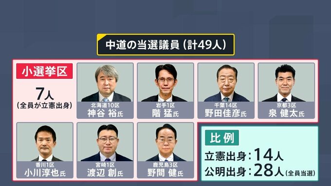 堀記者によると特筆すべきは、旧立憲民主党がほぼ7分の1に議席を減らす中、公明党出身議員は27議席から28議席へと維持した点だという。この結果について中道内部からは「立憲を食い物にして自分たちだけ党勢を拡大した」「今、旧公明の代表が立ったら“公明党”になっちゃう」という声も漏れ聞こえてくる。