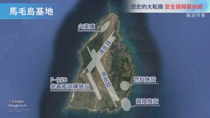 2本の滑走路や埠頭、台湾有事を見据えて“継戦能力”を高める大規模な火薬庫や燃料施設が建設される。