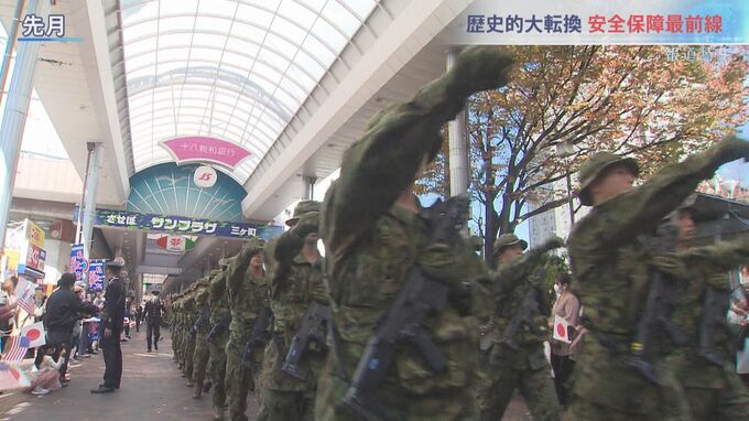 “基地との共生”を掲げる長崎県佐世保市。小銃を携帯して繁華街を行進するのは、日本版海兵隊と呼ばれる精鋭部隊・水陸機動団だ。