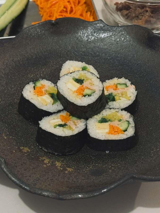 この投稿にフォロワーからは「海苔巻き上手!ご飯と具材の分量が素晴らしいですね」「すげぇ!!!キンパいいなぁ」「キンパって野菜とか具材多く入ってて美味しいよね」などの声が集まっています。