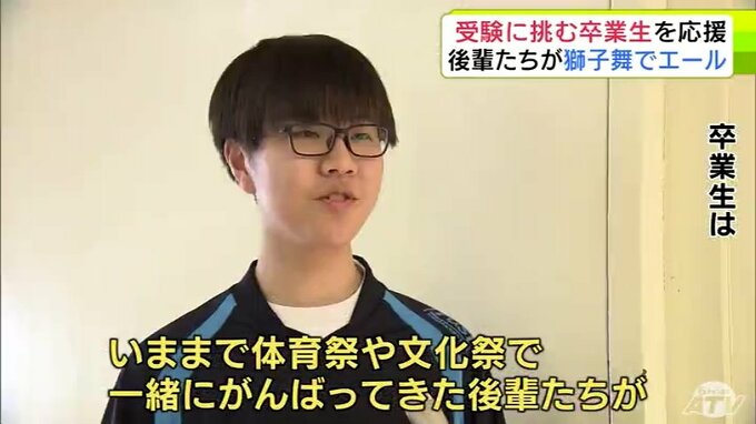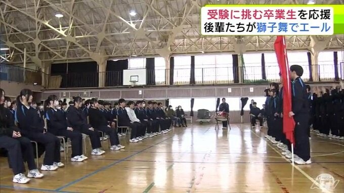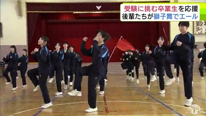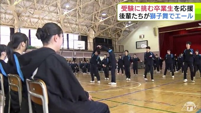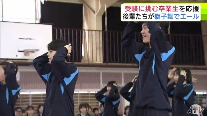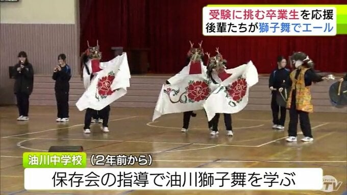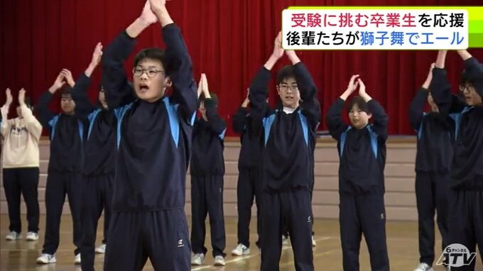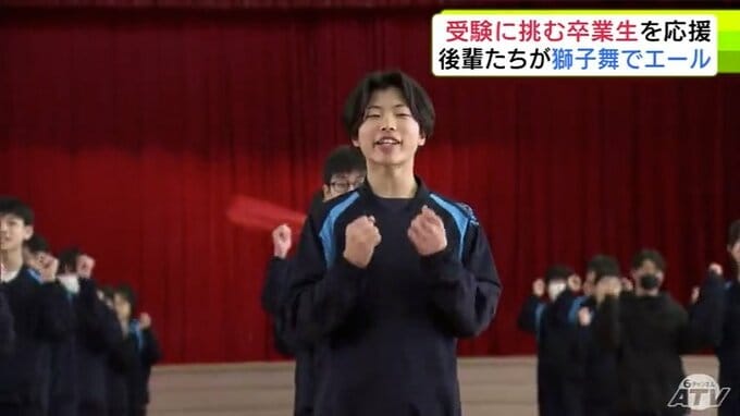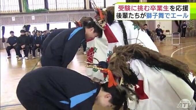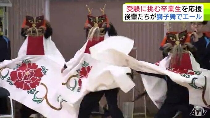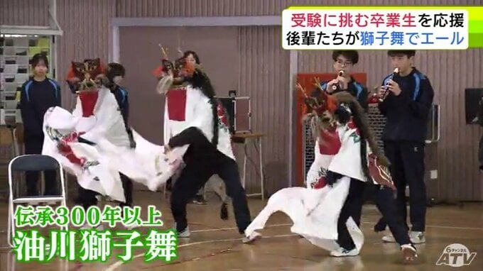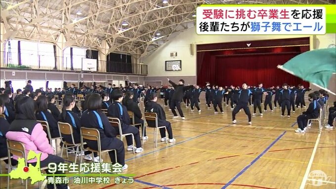 受験に挑む卒業生をユーモアのあるエールと伝統の獅子舞で応援 青森市油川中学校