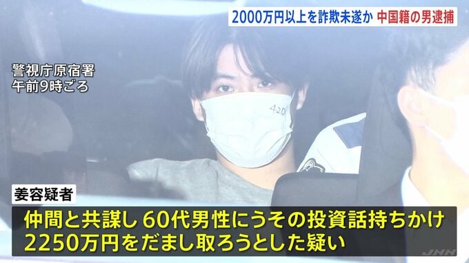 60代男性にうその投資話をもちかけ2000万円以上をだまし取ろうとしたとして、中国籍の男が現行犯逮捕されました。逮捕されたのは、中国籍の姜恒容疑者(21)で、仲間と共謀して60代男性にうその投資話を持ちかけ、2…