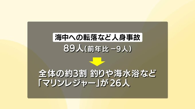 一方で、海中への転落など人身事故は前の年から9人減少となる89人でした。