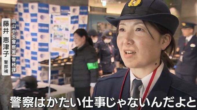警察官の仕事を子どもたちにもっと身近に感じてもらおうと岡山駅前の大型商業施設で、警察のおしごと体験イベントが開かれました。
