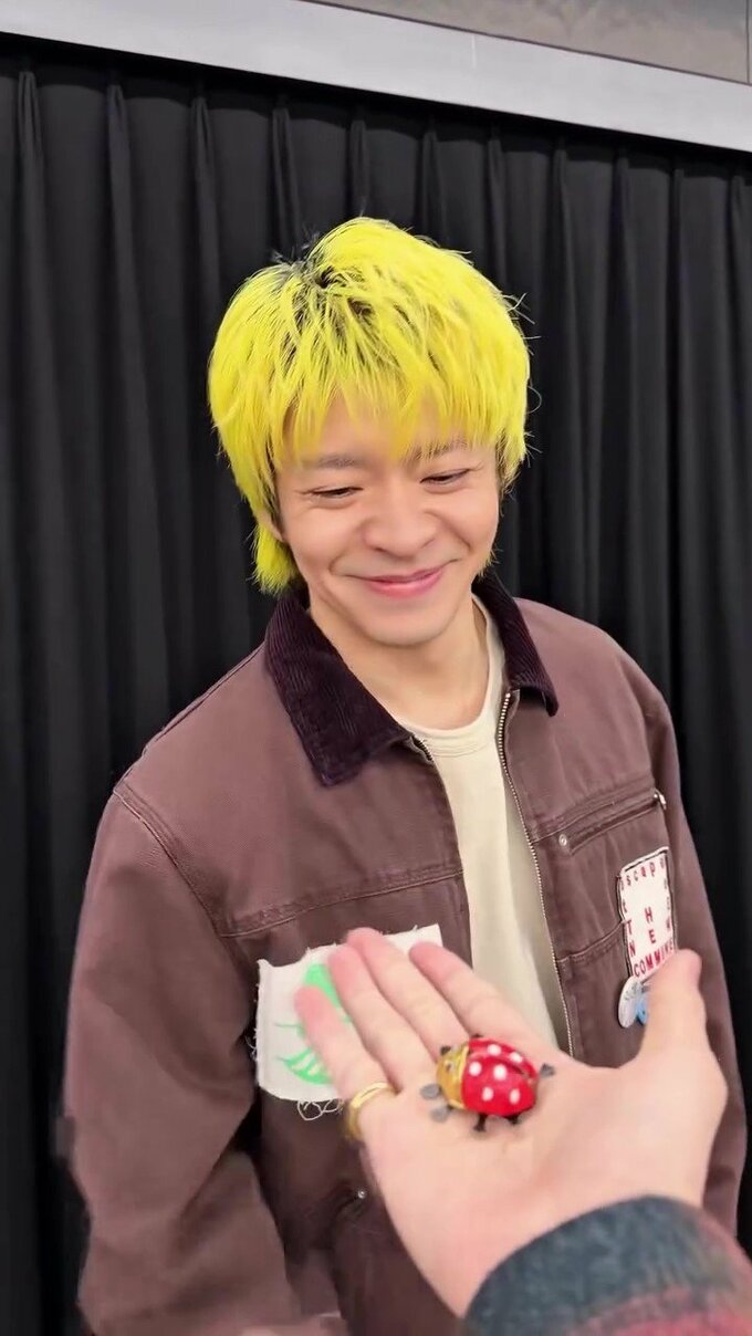 差し出された拳とグータッチを交わすと、手の中からテントウムシのようなデザインのチョコレートが現れるサプライズが。