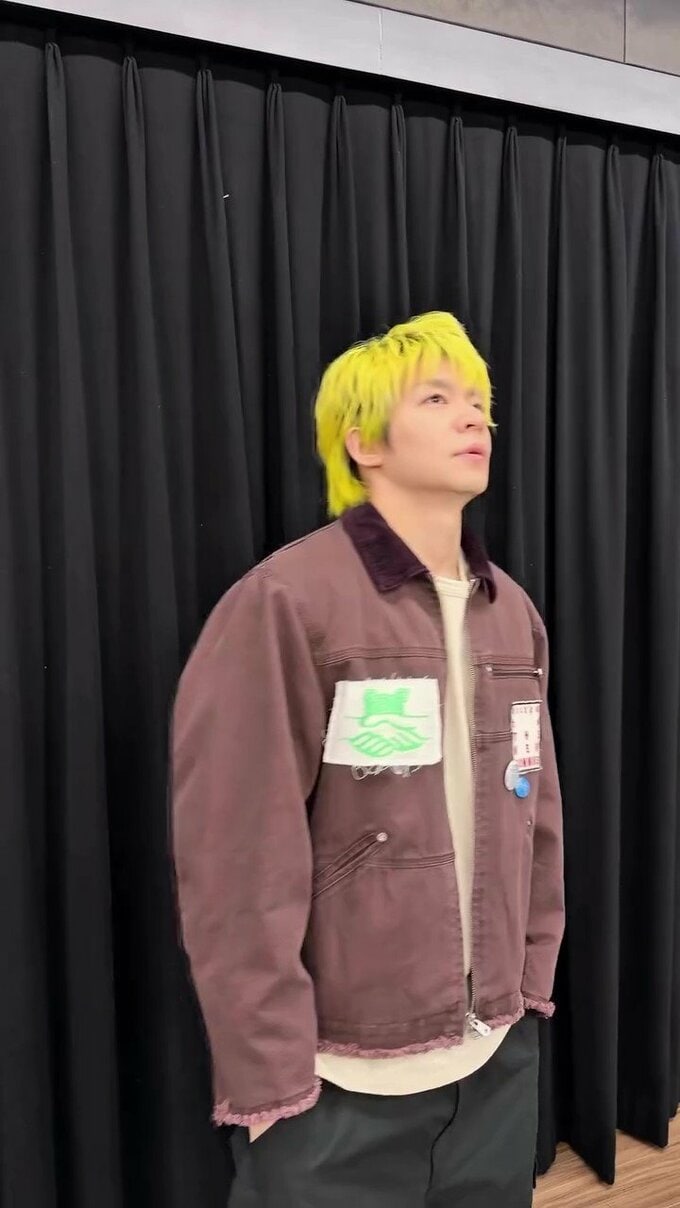 動画の冒頭には、茶色のジャケット姿の岸優太さんが登場。