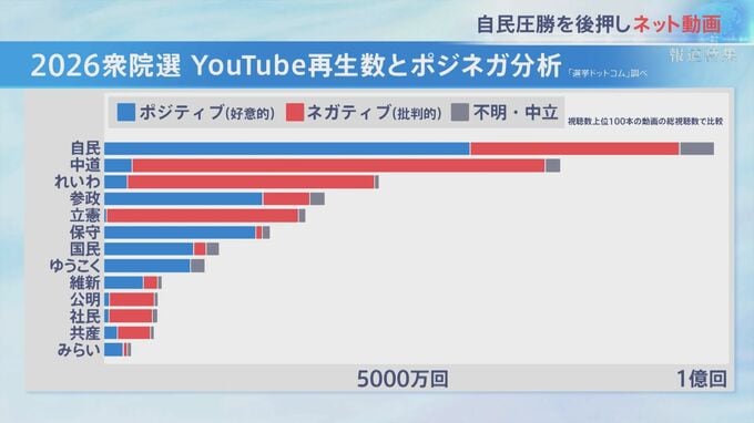その内容は、自民党は好意的な動画が多かったが、中道は…