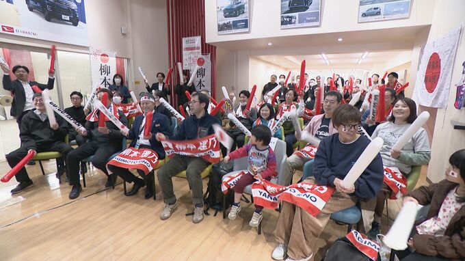 柳本選手が所属する愛知ダイハツの本社には、同僚ら約60人が駆けつけました。