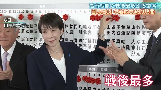 2月8日、当選確実となった候補者の名前に次々と花が付けられていきます。高市自⺠党が獲得した過去最多の316議席。この議席数を背景に日本の政治はどう変わっていくのでしょうか。