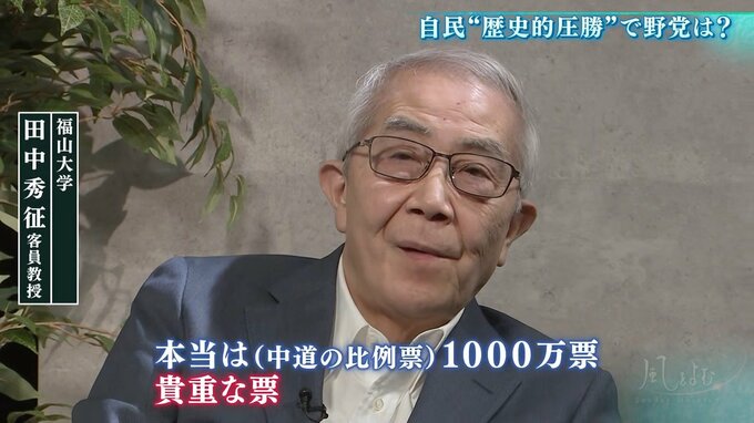 「本当は(中道の比例票)1000万票、貴重な票。単に支持したっていうより、(中道の)非常に雑なやり方を悔やみながら入れた票だから、なお貴重。だから、それを生かすためには、(中道は)責任をきちっと明らかにして、捨て身でやっていかなくちゃダメだ」