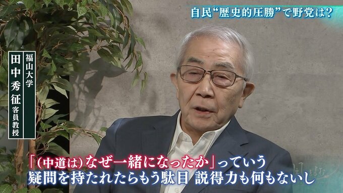 中道の大敗について、かつて非自民8党派による細川連立政権樹立に関わった田中秀征さんはこのように話します。