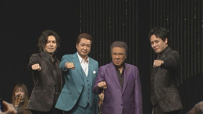 鳥羽一郎さん、山川豊さん兄弟と、鳥羽一郎さんの息子、木村竜蔵さん、木村徹二さんからなる木村家が一堂に会し、「木村家ファミリーコンサート」が都内で開催され、開演前に、新曲『あぁひとり旅』を披露、その後、取材に応じました。