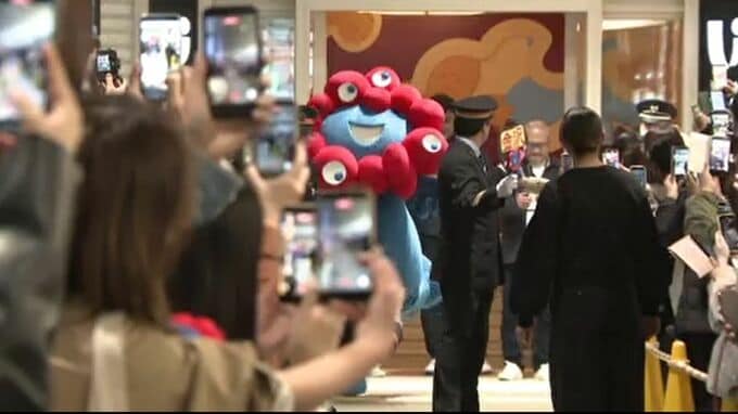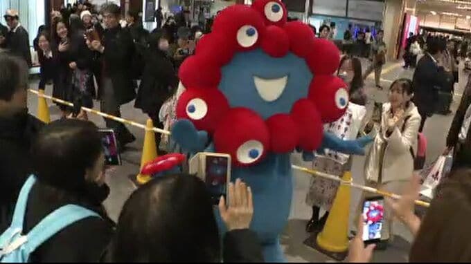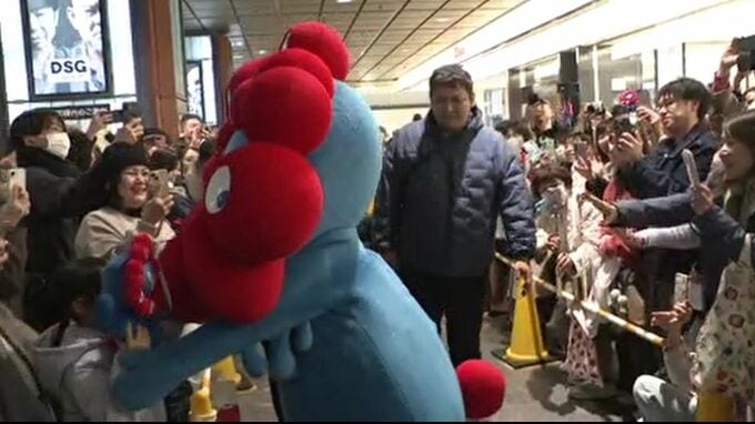 金沢駅のコンコースに登場したのは、大阪・関西万博の公式キャラクター「ミャクミャク」です。