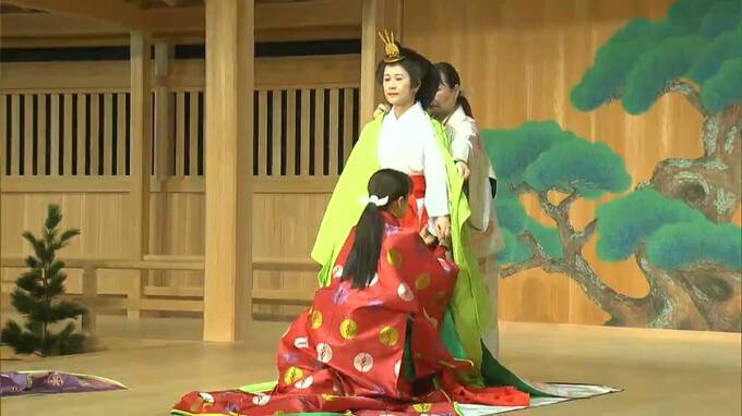 高松市出身の能楽師、伶以野陽子さんによる舞や十二単の着付けのほか生徒による箏の演奏なども行われ、現代の高校生の感性が和の文化と溶け合った表現を披露しました。