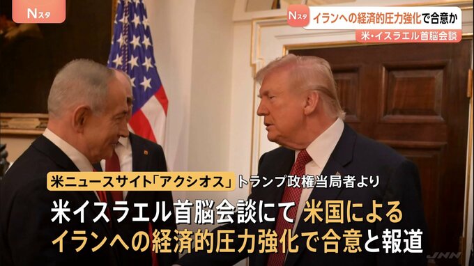 アメリカのトランプ大統領とイスラエルのネタニヤフ首相が今月11日に行った首脳会談で、イランへの経済的圧力の強化で合意したとアメリカメディアが報じました。アメリカのニュースサイト「アクシオス」は14日、ト…