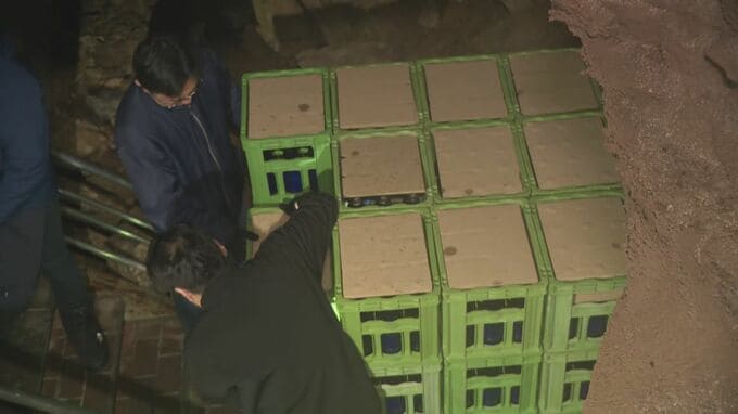 当麻町の「当麻鐘乳洞」に運び込まれているのは、当麻町産の酒米「彗星」を使ったオリジナルの日本酒「龍乃泉(りゅうのいずみ)」です。