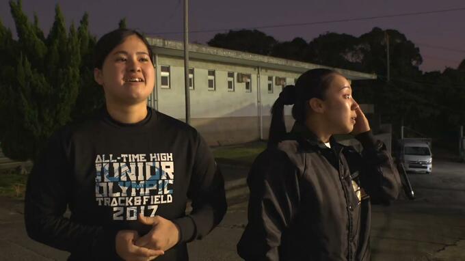 ともに練習する名桜大4年 仲宗根夢来選手: