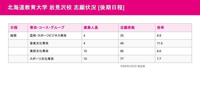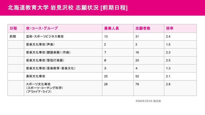 岩見沢校の志願状況 後期・音楽文化専攻で11.5倍