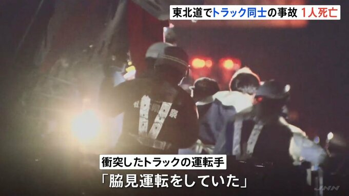 衝突したトラックを運転していた岩手県花巻市のトラック運転手の男性(55)にけがはなく、「脇見運転をして追突した」と話しているということです。