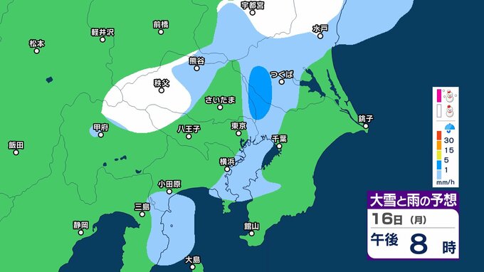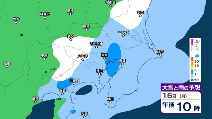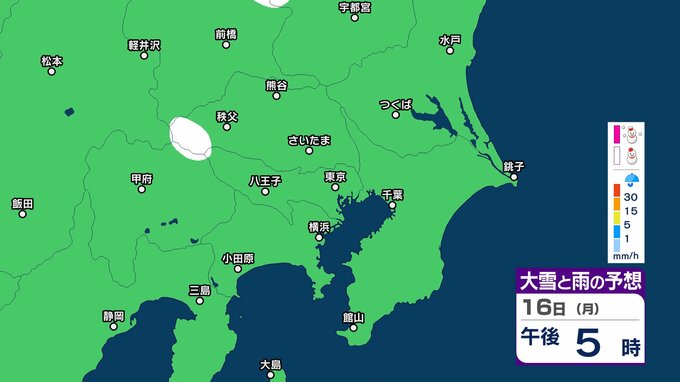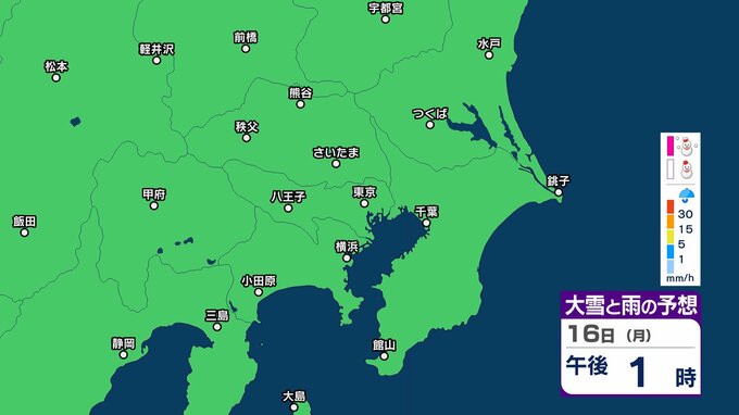 【今夜から雪か?】東京・栃木・群馬・埼玉・茨城・千葉・神奈川・長野・山梨 16日(月)~19日(木)1時間ごとの雪雨シミュレーション【気象庁/16日午前10時更新】 RSK山陽放送 2026年2月16日(月) 10:03 国内 16日(月)雪と雨のシミュレーション 【画像】16日(月)~19日(木)1時間ごとの雪と雨のシミュレーション