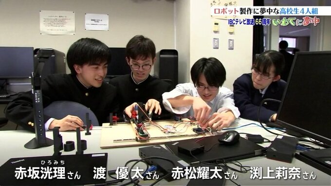 学校で製作するロボットのプログラミングの修正などに取り組むのは、盛岡一高2年生の赤坂洸理さん、渡優太さん、渕上莉奈さん、赤松耀太さんの4人です。